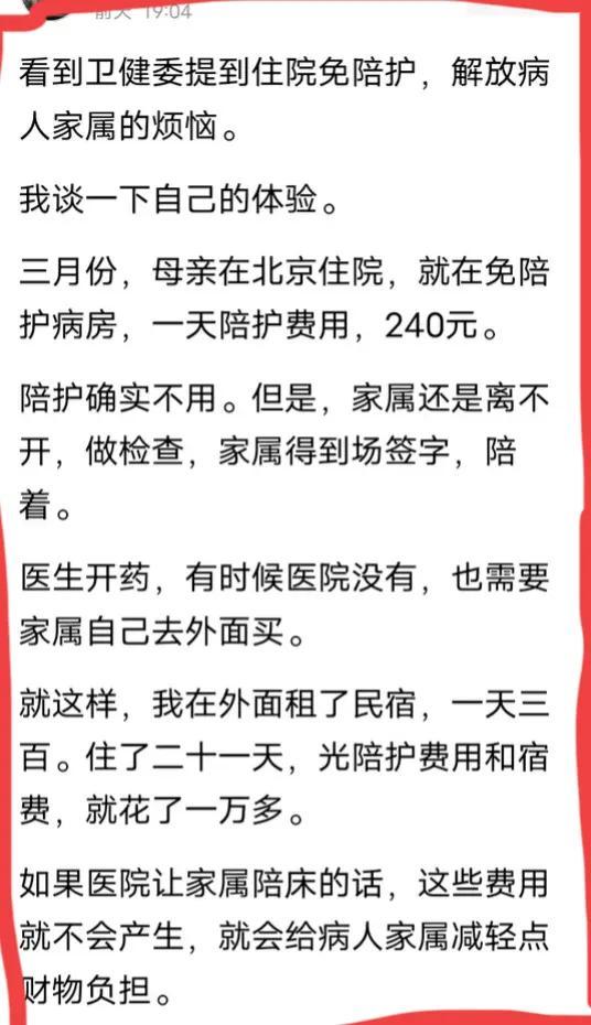 3月份陪母亲在北京住院,一天陪护费是240元。陪护很不错,但是还是离不开家属。